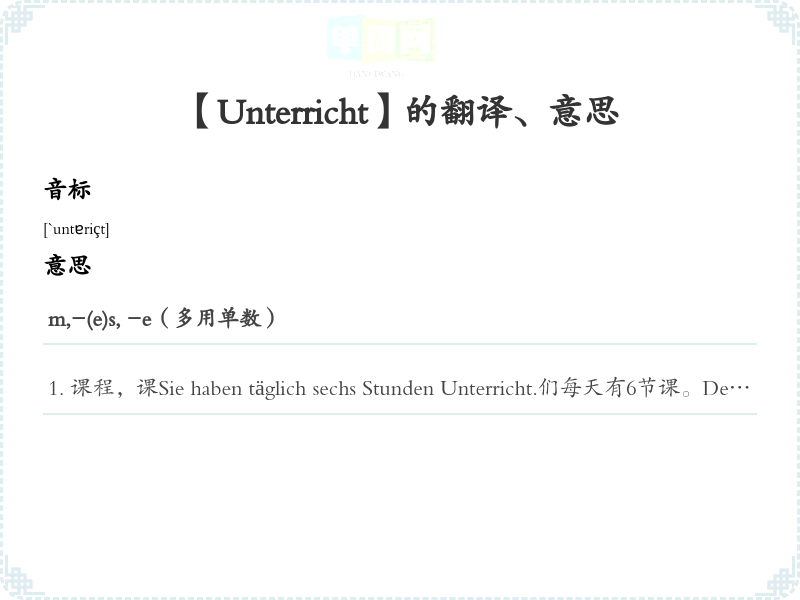 【Unterricht】是什么意思、字义解释