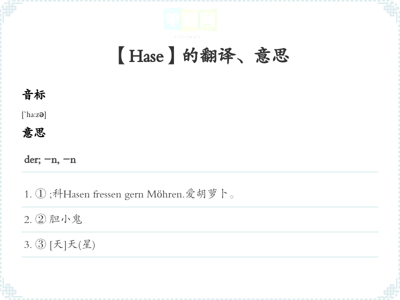 ① ;科Hasen fressen gern Möhren.爱胡萝卜。