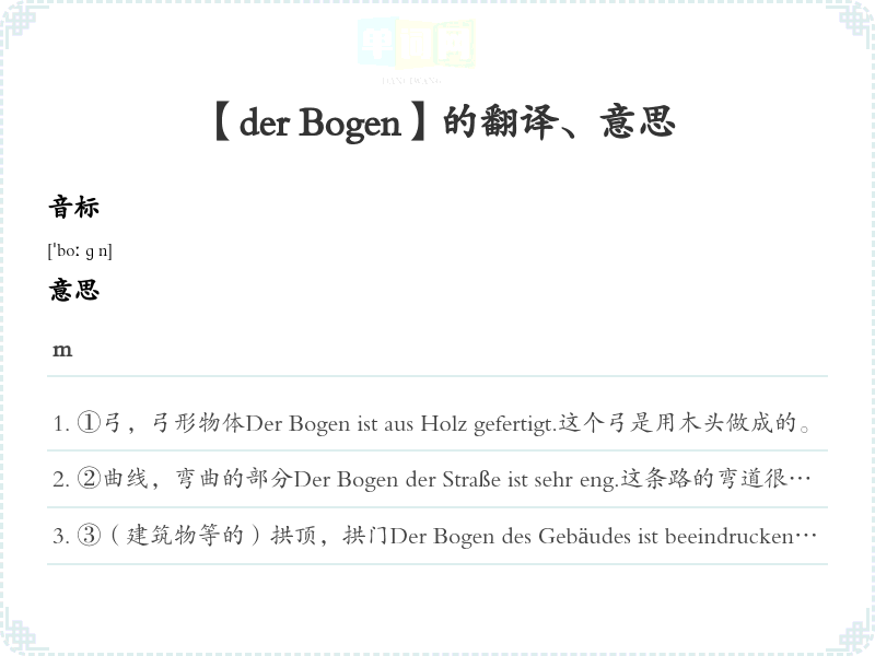【der Bogen】是什么意思、字义解释