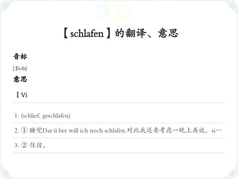 【schlafen】是什么意思、字义解释