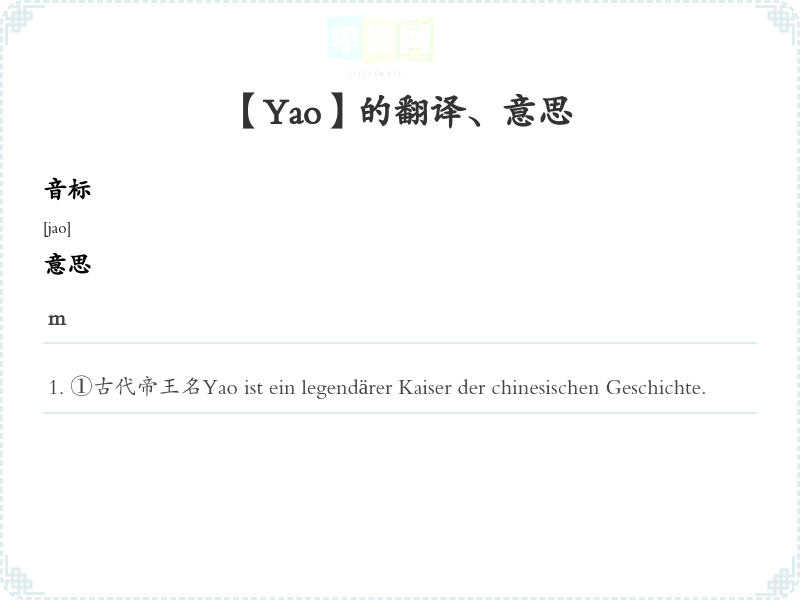 ①古代帝王名Yao ist ein legendärer Kaiser der chinesischen Geschichte.