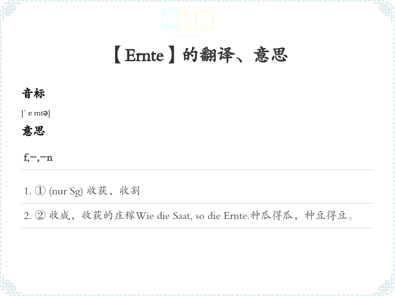 【Ernte】是什么意思、字义解释