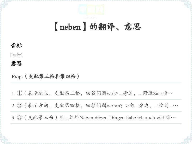 【neben】是什么意思、字义解释
