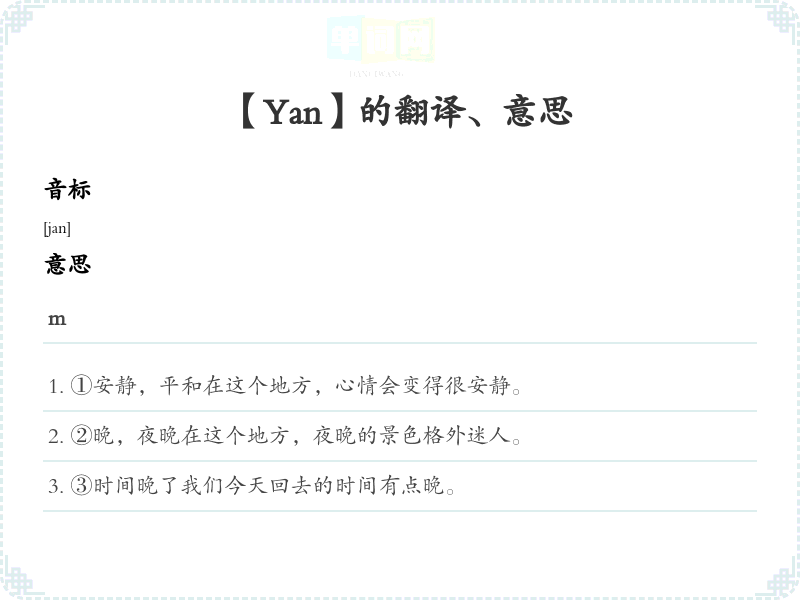 【Yan】是什么意思、字义解释