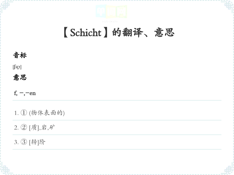【Schicht】是什么意思、字义解释