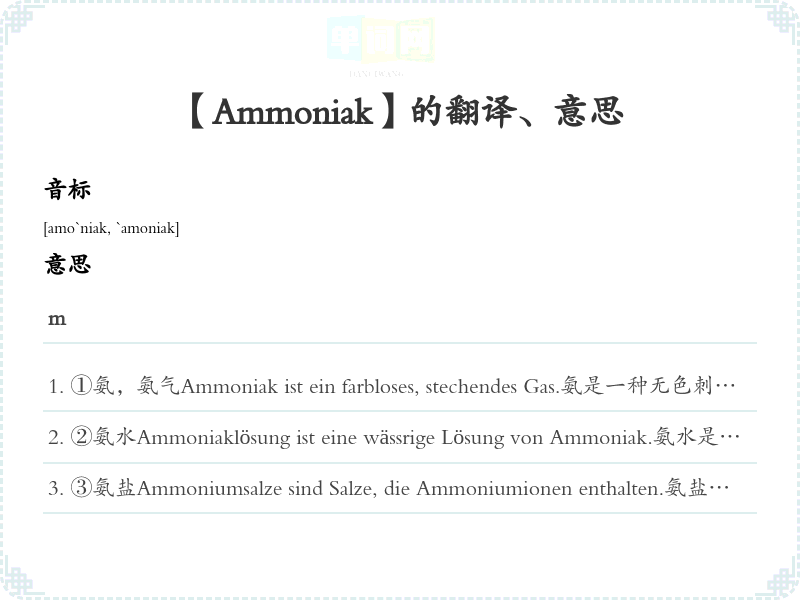 【Ammoniak】是什么意思、字义解释