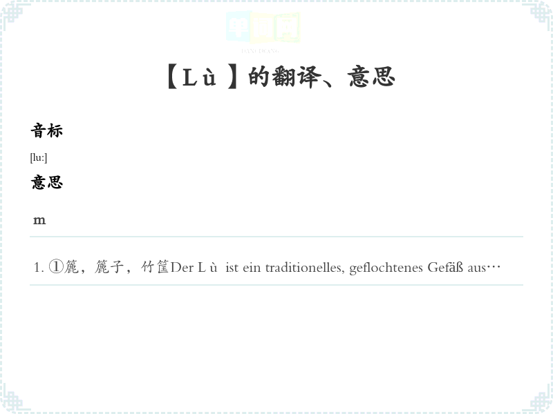 ①簏,簏子,竹筐Der Lù ist ein traditionelles, geflochtenes Gefäß aus Bambus.