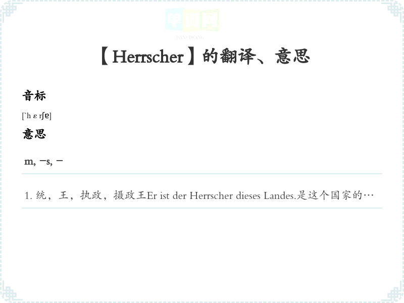 统,王,执政,摄政王Er ist der Herrscher dieses Landes.是这个国家的统。