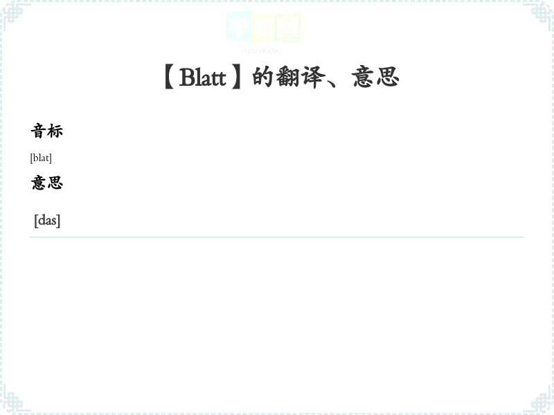 【Blatt】是什么意思、字义解释