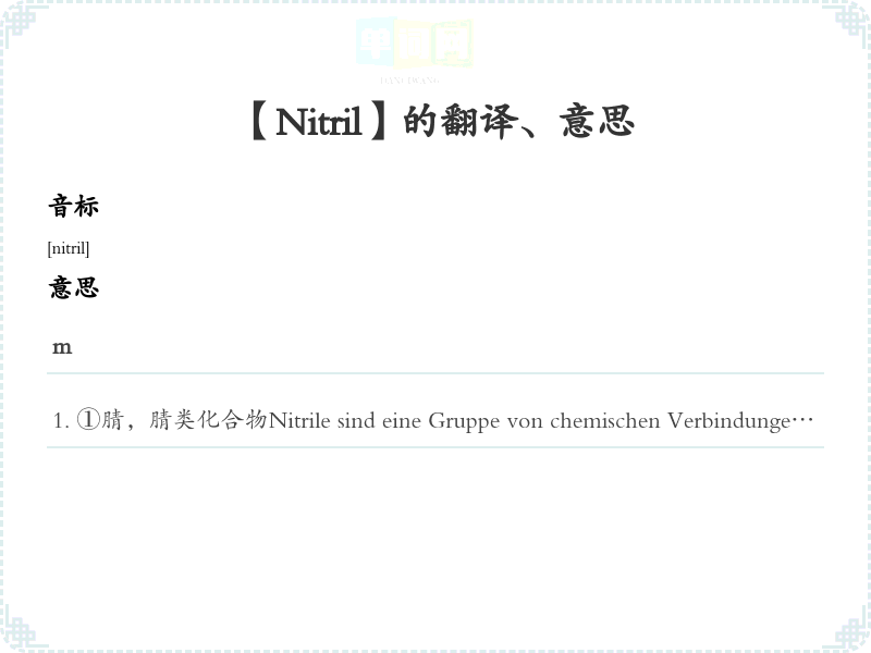 - 1. Das Nitril wird häufig in der Kunststoffeindustrie verwendet.
