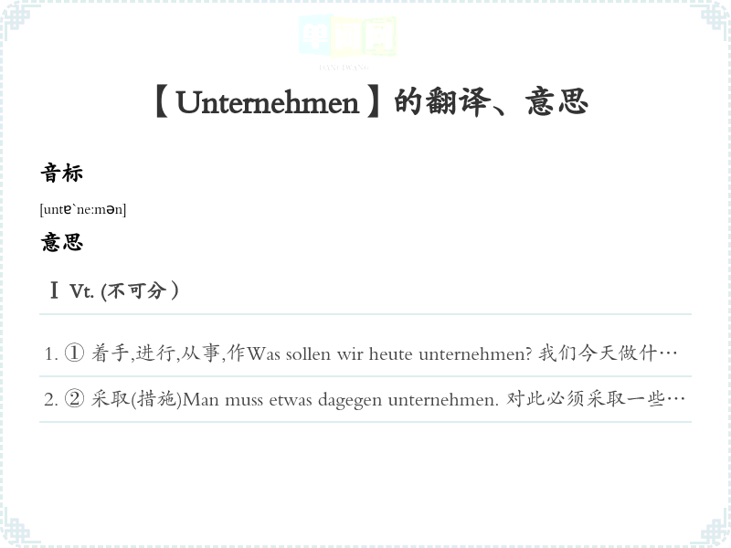 【Unternehmen】是什么意思、字义解释