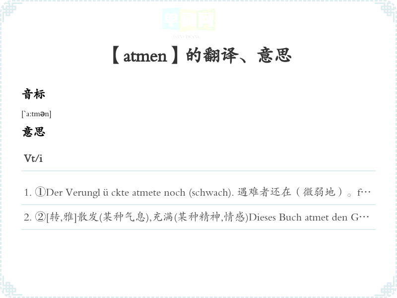 【atmen】是什么意思、字义解释