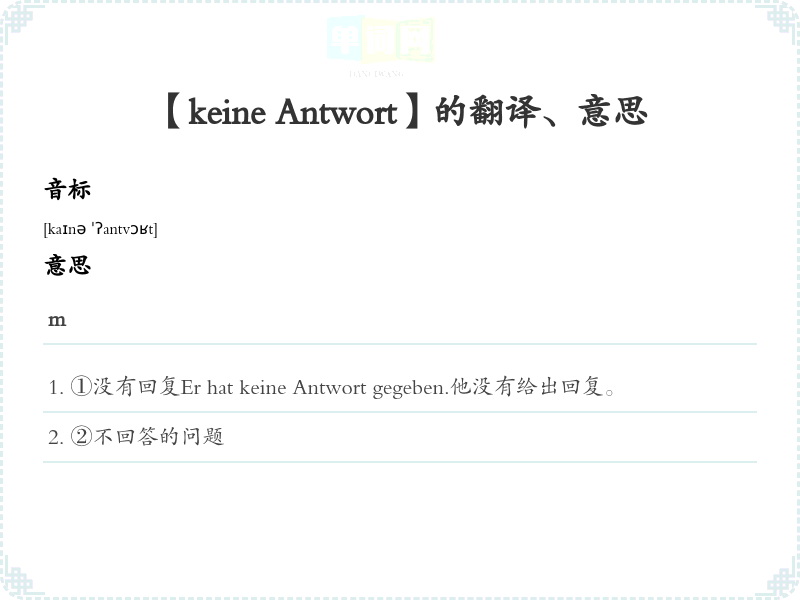 ①没有回复Er hat keine Antwort gegeben.他没有给出回复。