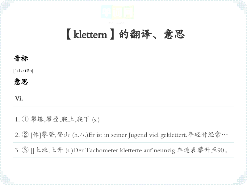 【klettern】是什么意思、字义解释
