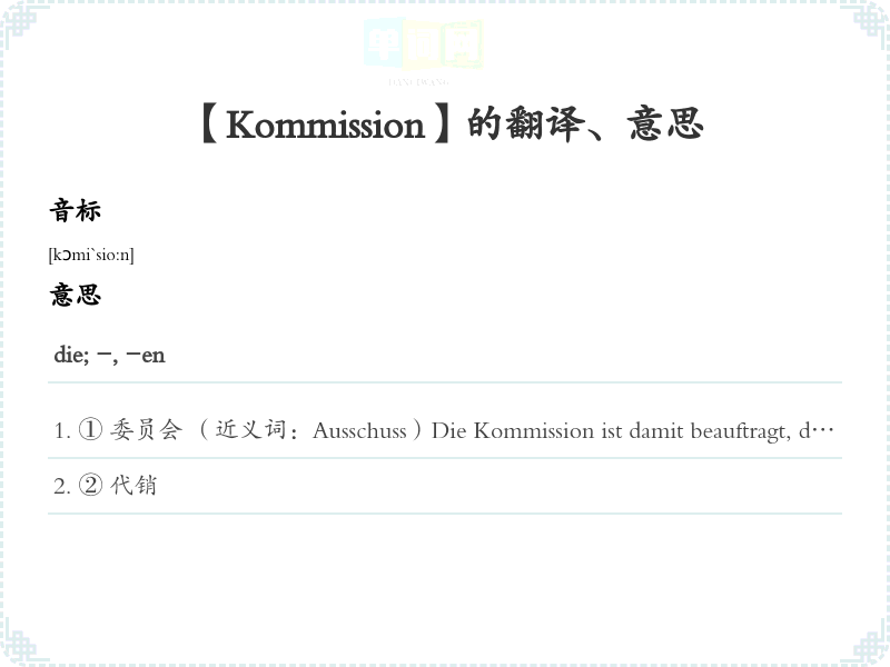 【Kommission】是什么意思、字义解释