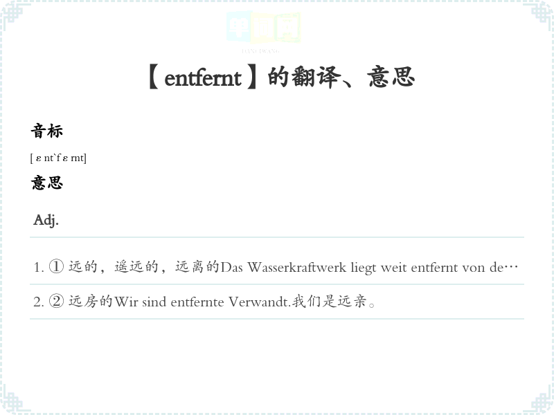【entfernt】是什么意思、字义解释