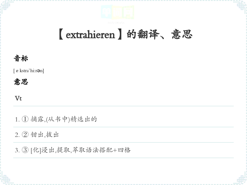 【extrahieren】是什么意思、字义解释