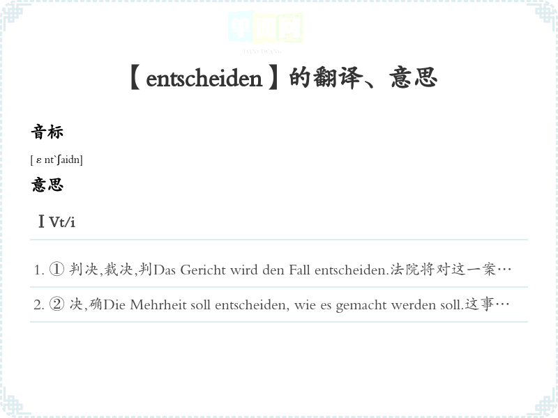 【entscheiden】是什么意思、字义解释