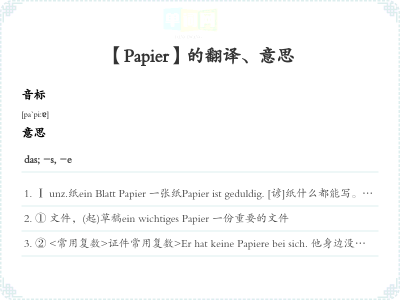 【Papier】是什么意思、字义解释