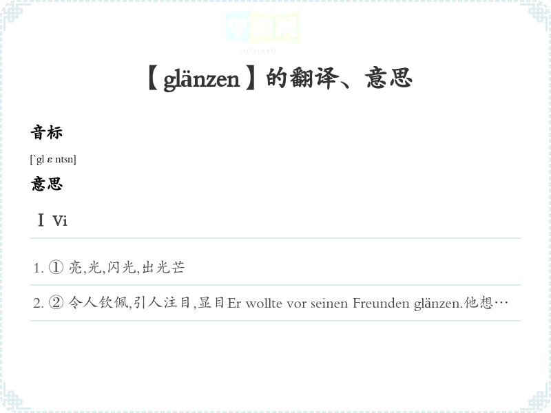 【glänzen】是什么意思、字义解释