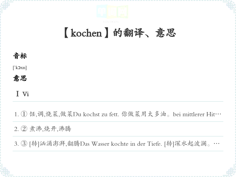 【kochen】是什么意思、字义解释