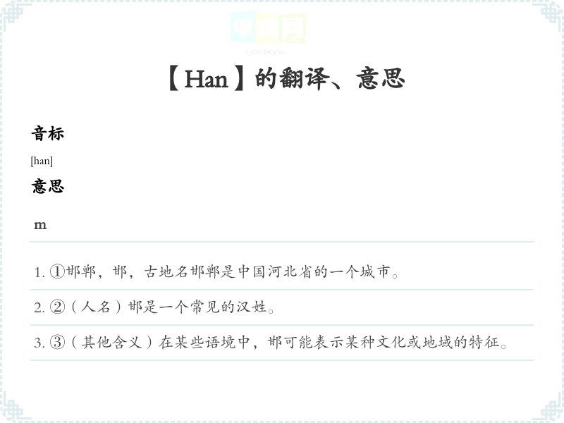 ③(其他含义)在某些语境中,邯可能表示某种文化或地域的特征。