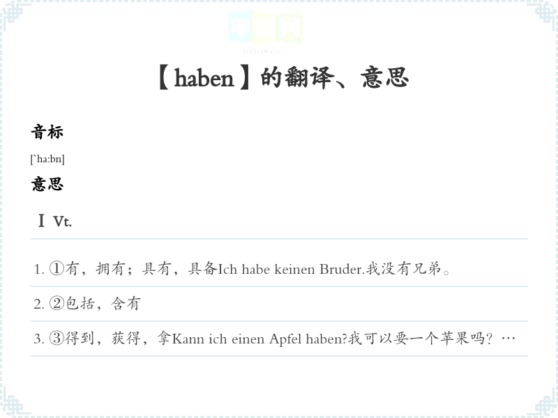 【haben】是什么意思、字义解释