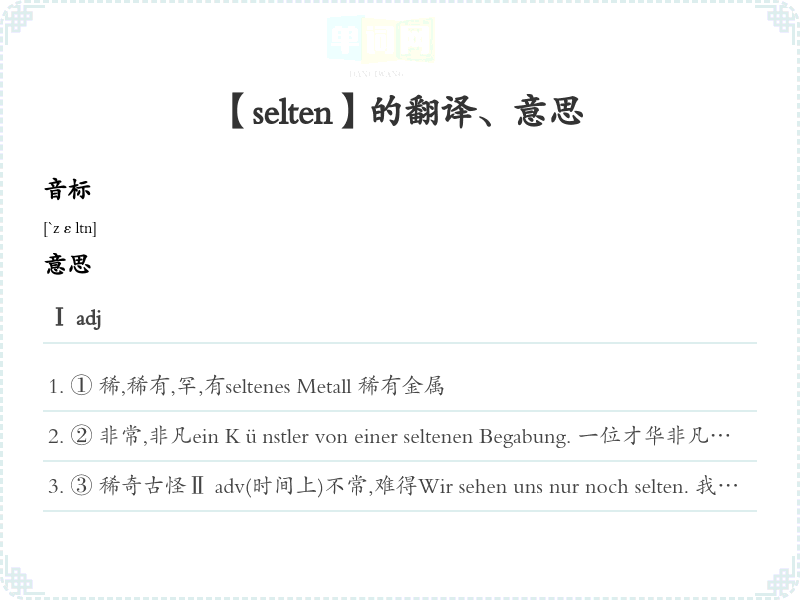 【selten】是什么意思、字义解释