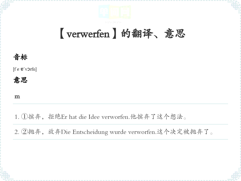 【verwerfen】是什么意思、字义解释
