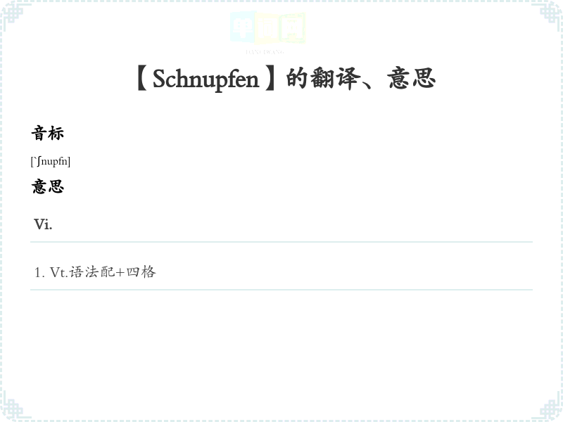 【Schnupfen】是什么意思、字义解释