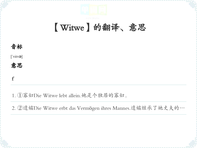 【Witwe】是什么意思、字义解释