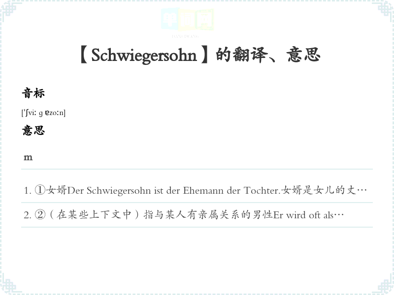 【Schwiegersohn】是什么意思、字义解释