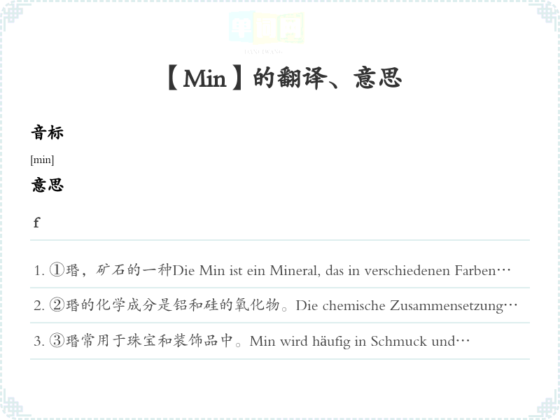 ③瑉常用于珠宝和装饰品中。Min wird häufig in Schmuck und Dekoration verwendet.