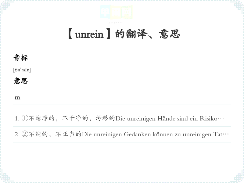 【unrein】是什么意思、字义解释