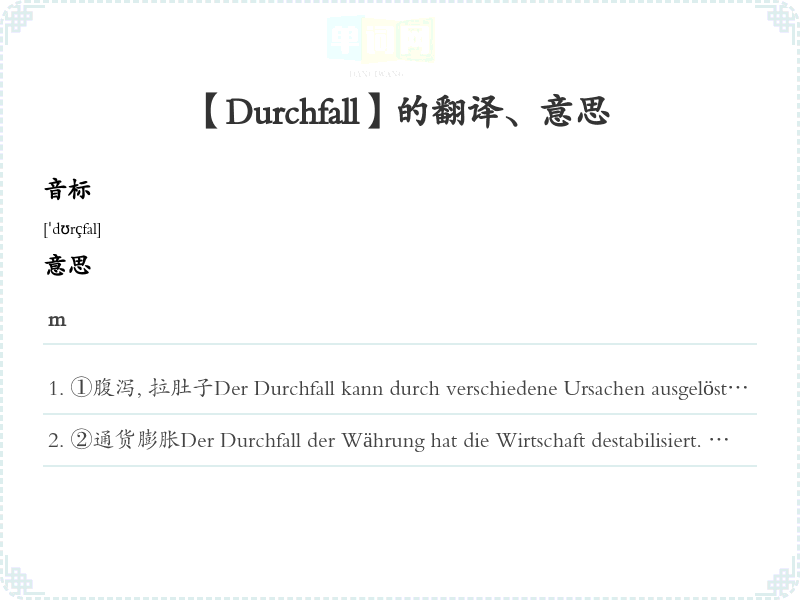 ②通货膨胀Der Durchfall der Währung hat die Wirtschaft destabilisiert. 货币贬值使经济不稳定。