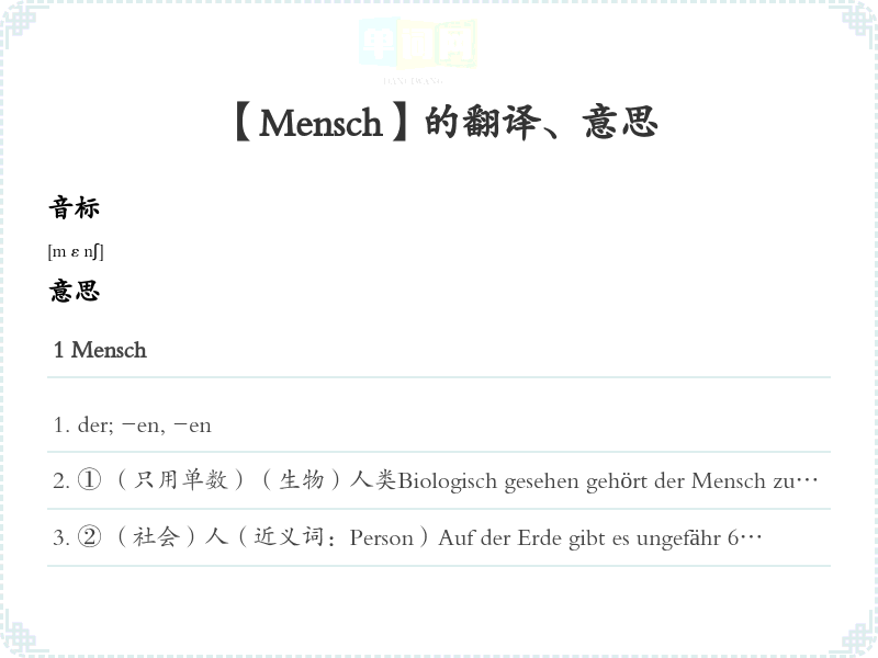 【Mensch】是什么意思、字义解释