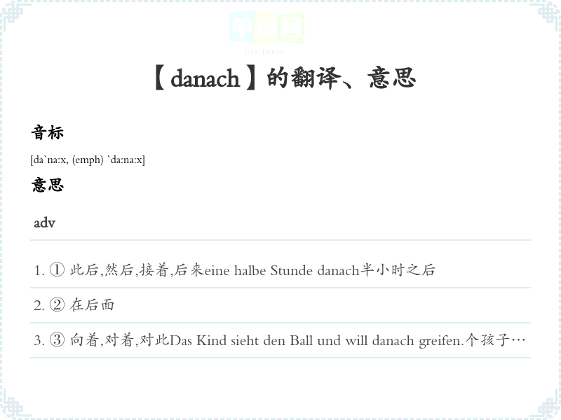 ① 此后,然后,接着,后来eine halbe Stunde danach半小时之后
