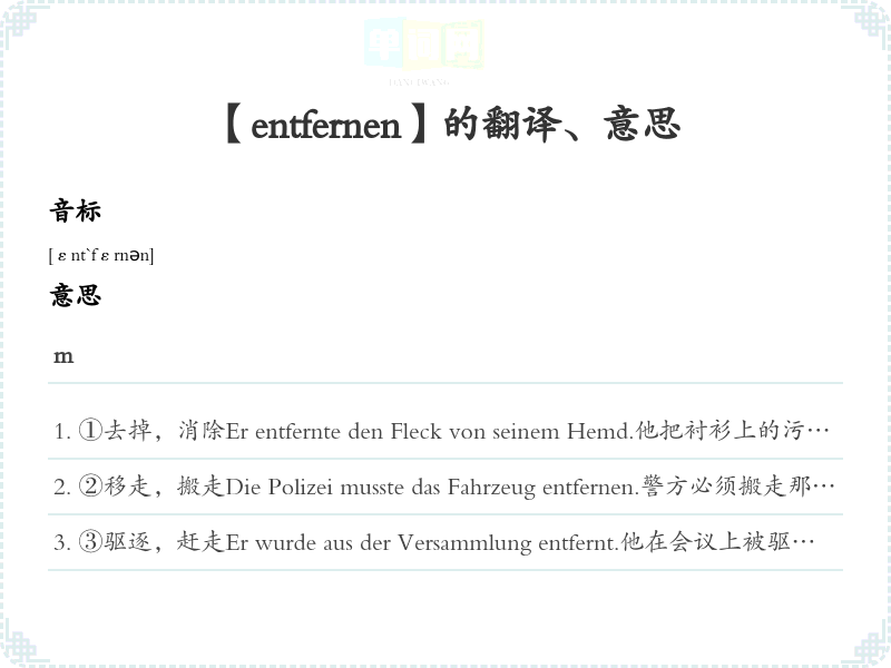 【entfernen】是什么意思、字义解释