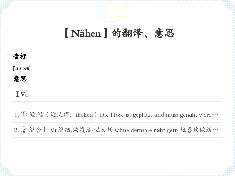 【Nähen】是什么意思、字义解释