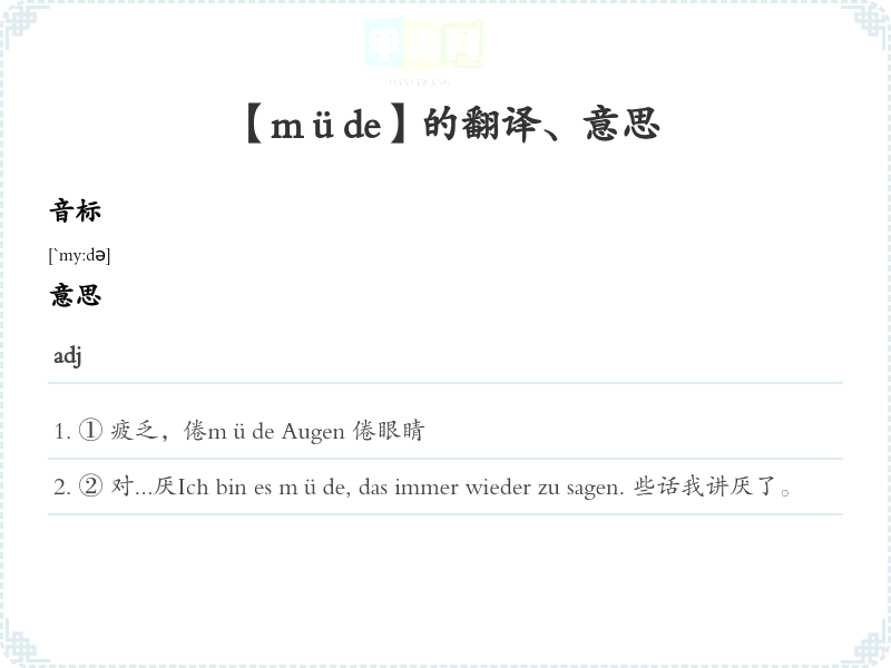 ② 对...厌Ich bin es müde, das immer wieder zu sagen. 些话我讲厌了。