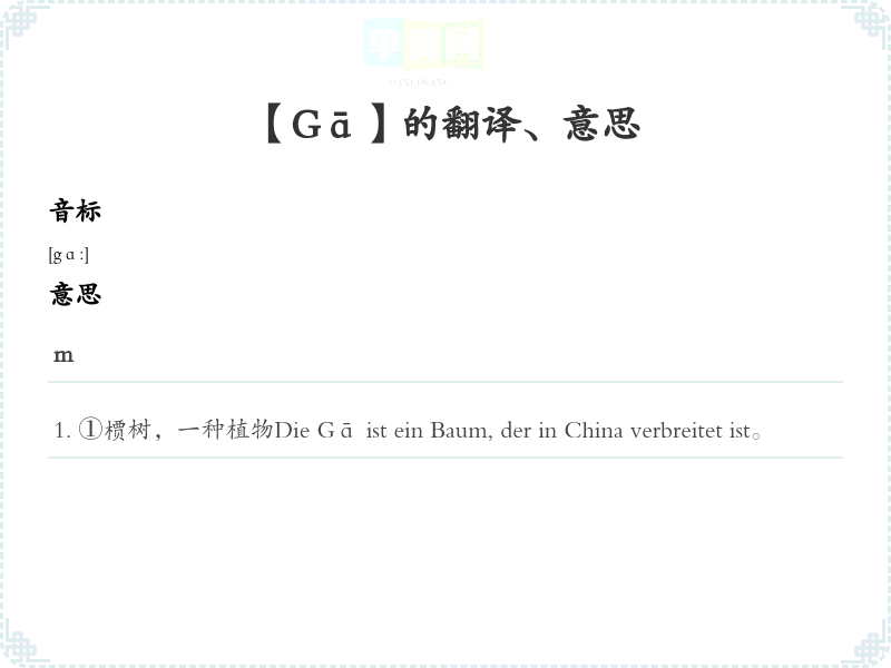 ①槚树,一种植物Die Gā ist ein Baum, der in China verbreitet ist。