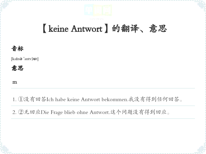 【keine Antwort】是什么意思、字义解释