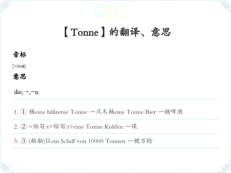 【Tonne】是什么意思、字义解释