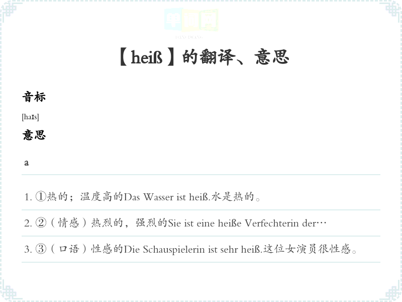 【heiß】 近义词:、 反义词: 联想词