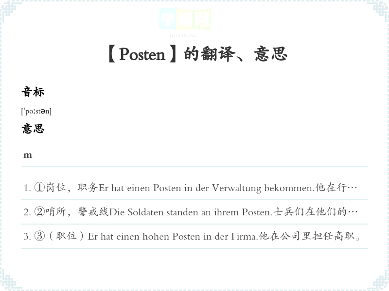 【Posten】是什么意思、字义解释