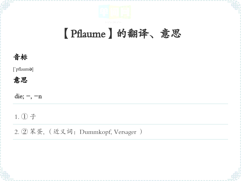 ② 笨蛋, (近义词:Dummkopf, Versager )