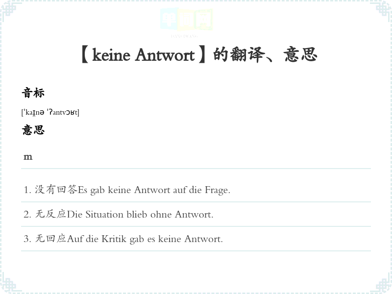 【keine Antwort】是什么意思、字义解释