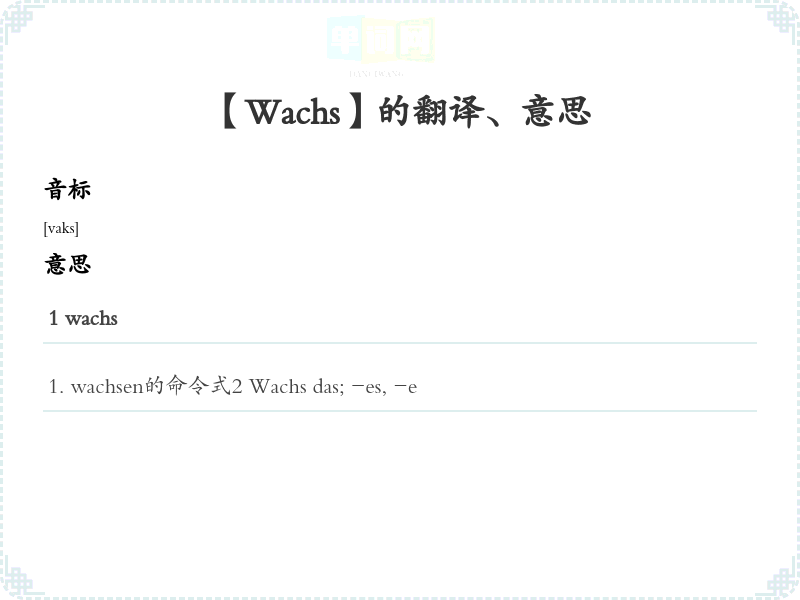 【Wachs】是什么意思、字义解释
