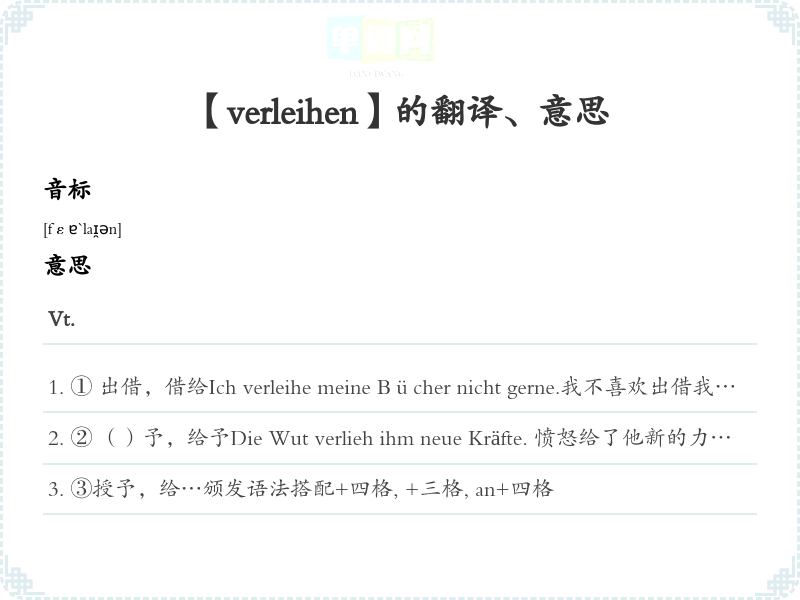【verleihen】是什么意思、字义解释