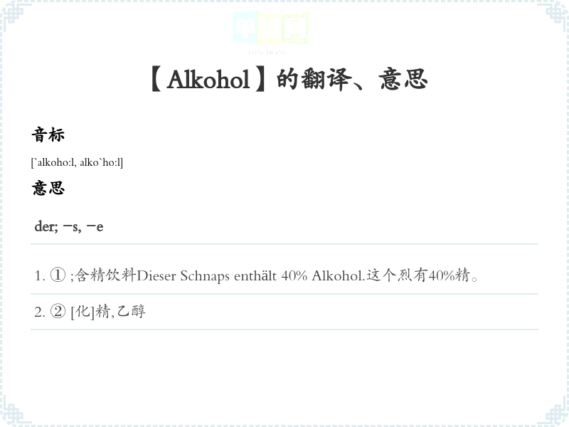 【Alkohol】是什么意思、字义解释
